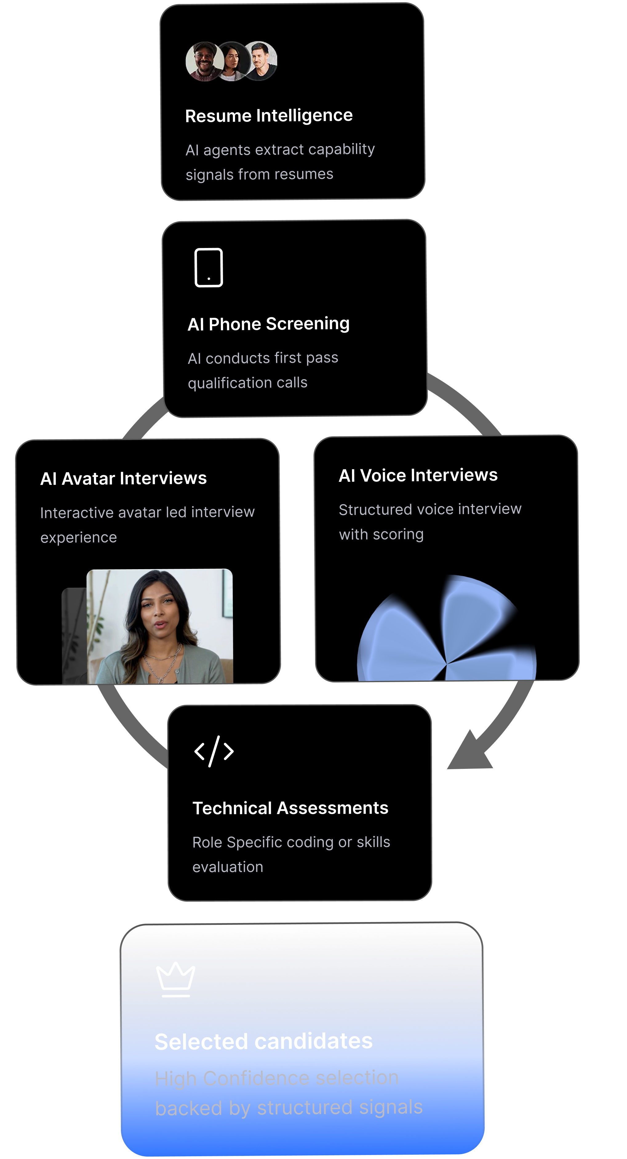 Immersive AI avatar screenings with fully configurable assessment flows.